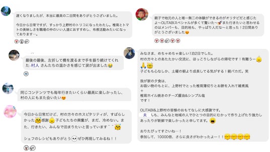 滞在中には、村人と家族が名前で呼び合う関係が生まれ、帰宅後もSNSを通じて交流が続くケースも多数。「違う季節にも来たい」「村の人にまた会いたい」といった声が多く寄せられています。