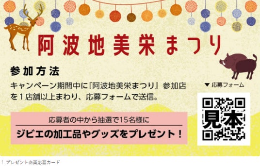 この度、「阿波地美栄」の消費拡大およびブランドの認知度向上を図るため、次のとおり、ジビエ加工品やグッズが抽選で当たる「阿波地美栄まつり」を実施します。