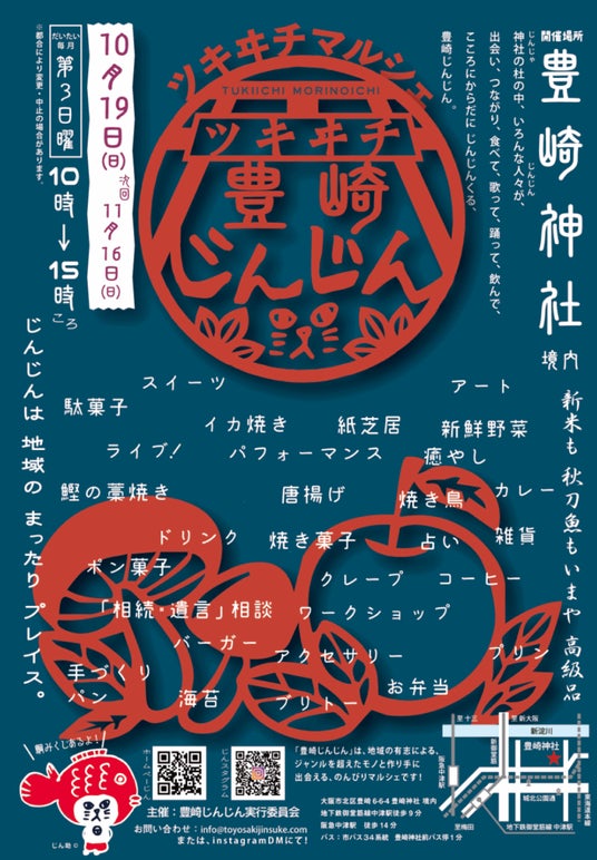 豊崎じんじんは、大阪市北区の豊崎神社で毎月第3日曜日に開催される地域イベントです。
