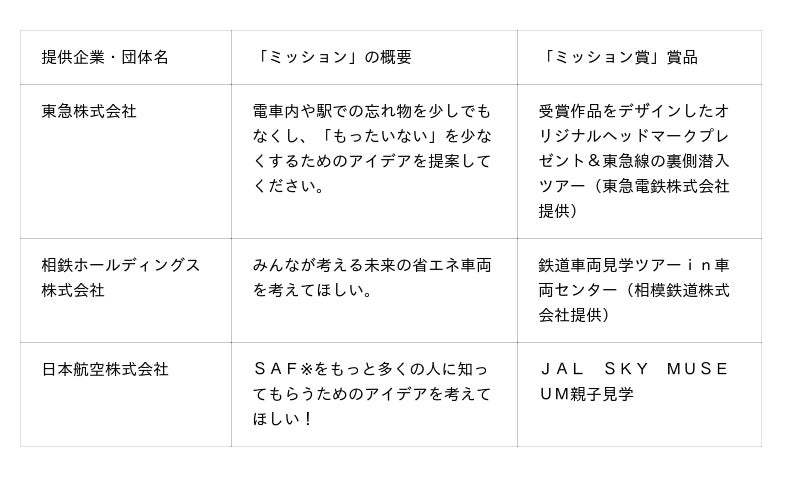 小学生のしなやかでフレッシュなアイデアから生まれる作品を通じて、あらゆる世代の環境や社会にやさしい行動の促進を目指すアワードです。企業・団体は、作品のテーマとなる「ミッション」を提供し、小学生は自分が好きな「ミッション」を選び、3コマ漫画、ポスター、10秒以内の動画のいずれかを制作します。応募作品の中から、本アワードの審査委員が全体賞(計5作品)、東急などの「ミッション」提供企業・団体が「ミッション賞」(ミッションごとに最大3作品)を選定し、制作者には表彰式で表彰状や賞品を授与します。なお、受賞作品は特設サイトの他、東急線沿線をはじめとする交通広告や商業施設などで公開します。