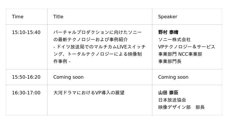 DAY1ではサイバーエージェント、NHK、IMAGICAエンタテインメントメディアサービスなど、業界を牽引する豪華登壇者が集結。NHK大河ドラマにおけるバーチャルプロダクション活用の展望や、サイバーエージェントが独自に取り組むバーチャルプロダクション撮影や背景制作におけるAI活用の取り組みなど、品質と生産性を両立させるための実践ノウハウに迫ります。