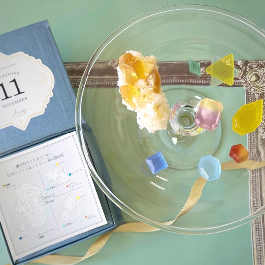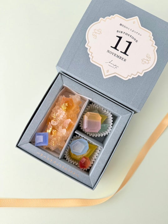 メルティングポットハラペコラボ株式会社(所在地:福岡県福岡市、以下 ハラペコラボ)より、11月の誕生石トパーズとシトリンを職人がリアルに切り出す期間限定の琥珀糖ボックスが登場。公式オンラインショップにて2025年10月24日より販売を開始しました。”誕生石を食べる”という新しい体験を11月生まれの大切な人へ、自分へのご褒美にも。美しく輝く宝石のようなアートなお菓子をお楽しみいただけます。