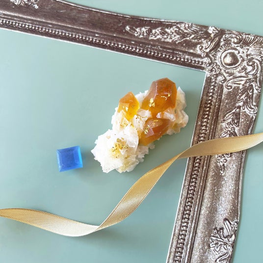 毎月1か月間だけお作りする誕生石のこうぶつヲカシ。11月の誕生石は、透明感のあるオレンジがかったイエローが美しい、黄色系の宝石の代表格であるトパーズと、同じく黄色系の水晶シトリン。2つの誕生石をモチーフに、秋らしいこうぶつ色合いになるよう詰め合わせました。ひとつひとつ職人が手作業で切り出す琥珀糖は、ひとつとして同じものはない手仕事ならではの温かみで、鉱物や宝石の美しさを表現しています。大切な方や、誕生日の贈り物にもぴったりです。