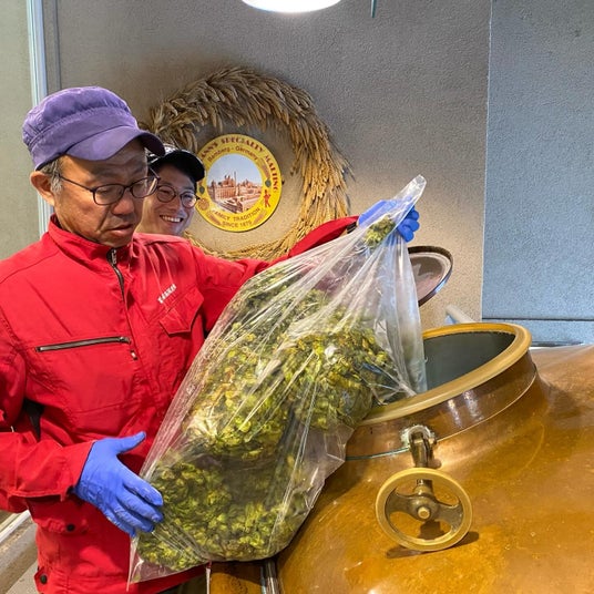 今回、富士桜高原麦酒では初となる【生ホップ】を使用した限定ビール『プレミアムピルスナー富士山ホップ版』は、富士吉田市、富士河口湖町、忍野村にある5か所の圃場でカイコガネを中心に数品種の「富士山ホップ」を栽培、生産する農業者の組合「富士北麓ホップ生産者組合」と、2021年より富士吉田市でビール造りをスタートし地元の素材などを使用したビールなどを造る「BRIGHT BLUEBREWING」のご協力のもと富士桜高原麦酒では初となる【生ホップ】を使用した「プレミアムピルスナー」を醸造しました。