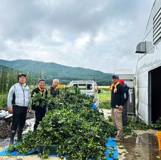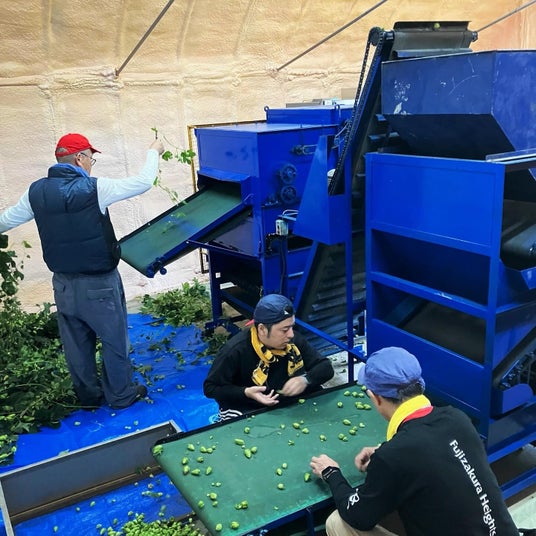 今回は、「富士北麓ホップ生産者組合」のみなさんが栽培した「富士山ホップ」の収穫・選別に醸造長の古屋が8月に手伝わせていただきました。