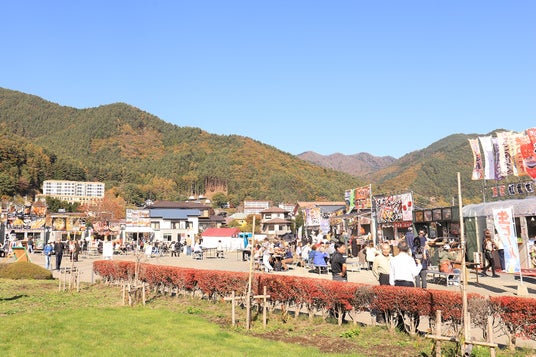 河口湖畔のおよそ400~500本に及ぶ紅葉が、11月上旬から中旬の最盛期には湖にその美しい風景を映し出します。また、「もみじ回廊」では、幻想的なライトアップが催されます。色づくもみじと富士山の共演、夜のライトアップ、キッチンカーや屋台の出店など見どころ満載のイベントです。