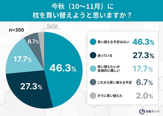 夏を経た寝具は、見た目以上に湿気や皮脂汚れを含んでおり、睡眠環境を悪化させる要因にもなります。今回の調査では、多くの人が“汚れを感じているのに買い替えない”という実態が明らかになりました。「枕を新調すること=快眠への投資」と捉え、季節の変わり目に寝具をリフレッシュする習慣が求められます。快眠ランド運営者コメント