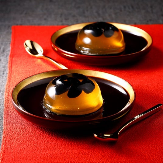 ふっくら柔らかなどらまめの甘煮を錦玉羹の中に入れました。