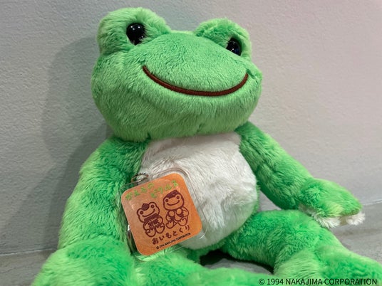 上目遣いの大きな瞳に癒される!と発売当時からカエル好きの方やピクルスファンの方の支持を受け、心をやさしく潤す人気キャラクターとして、今も多くの人に愛されています。