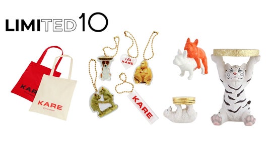 長年愛されてきた人気アイテムがこの日のために別注カラーにドレスアップした日本エクスクルーシブアイテム(日本限定アイテム)をはじめ、KAREを象徴するアイテムがミニチュアサイズになったアクリルキーホルダーや、日常使いしやすいトートバッグなど全10種のスペシャルアイテムが登場。数量限定なので、ぜひお見逃しなく!