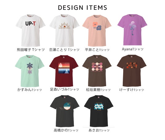 取り扱いアイテム:Tシャツ、スマホケース、文房具、のぼり旗他(毎月2アイテムずつ追加!)