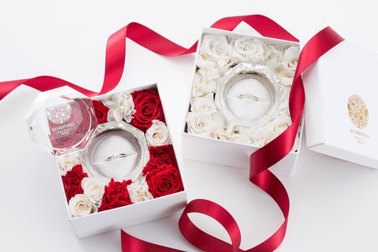 プロポーズの際にお渡しする婚約指輪のケースとして、「一真堂オリジナル プリザーブドフラワーBOX」をご用意。