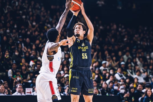 1本外してしまったんですけど、辻さんからのパスもそうですし、本当にうちのチームは引力の強いというか、ドライブに行った時に、絶対に寄らなきゃいけない選手がすごく多い中で、そこから僕にフリーでパスをくれる選手たちがすごくいるので、責任を持って決め切らなきゃなというふうに思っている反面、僕自身もシュートがすごい自信があるので、入る入らないというよりかは、自分が練習してきたタイミングでシュートを打ちきるというところを一番に心がけています。