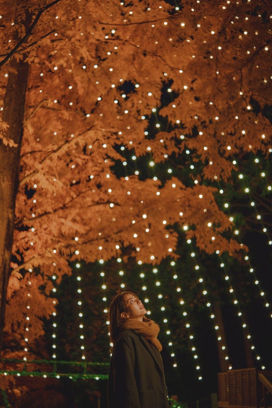 森のクリスマスツリーの真下はキラキラの幻想的空間