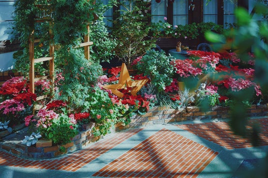 木製の星のオーナメントやクリスマスカラーで彩るクリスマスガーデン