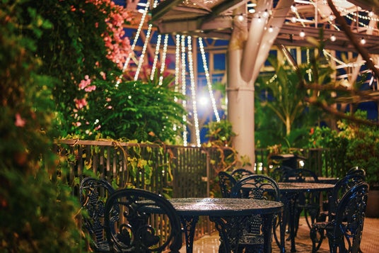神戸の夜景が見える特等席「ザ・ヴェランダ テラス」。頭上にはキラキラのイルミネーションが・・・