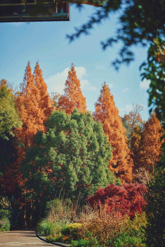 秋から冬にかけ黄色く色づき季節を彩るメタセコイア。神戸布引ハーブ園では、園内各所で16本の大きなメタセコイアが色づきます
