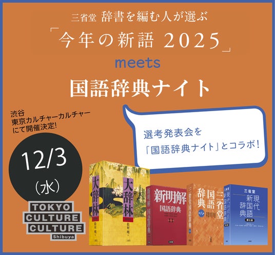 三省堂 辞書を編む人が選ぶ「今年の新語2025」選考発表会、12月3日(水)夜に開催決定!!渋谷・東京カルチャーカルチャーにて、今年も大人気エンタメイベント「国語辞典ナイト」とコラボ開催!