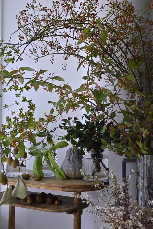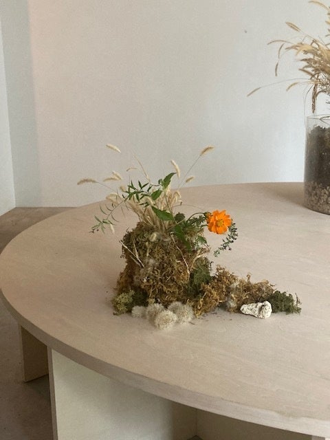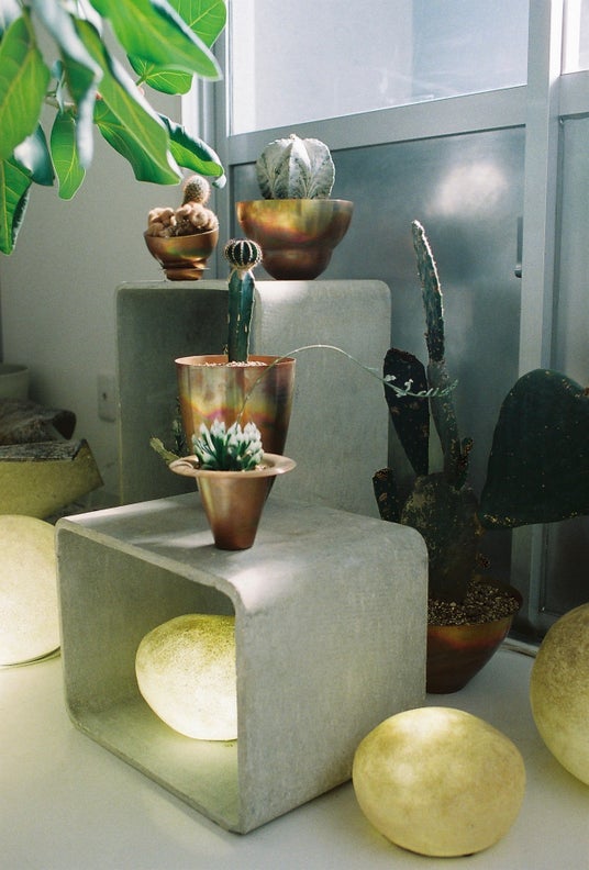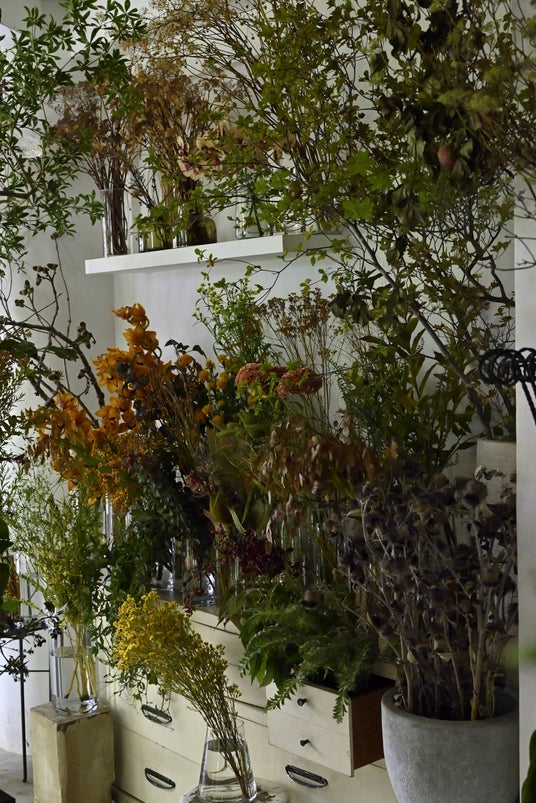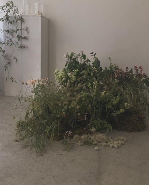 ヨーロッパのヴィンテージベースをはじめオリジナルで製作した銅製の鉢、国内外のアーティストの作品など、様々な装飾品や家具を花や植物を交えながら展開。また、空間装飾やスタイリングなどのヴィジュアルワークも行なっている。植木市では「copper pot」を販売。