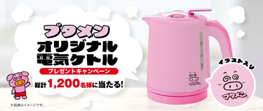 ■ブタメン専用!?ピンク色のブタメンオリジナル電気ケトルが総計1,200名様に当たる!