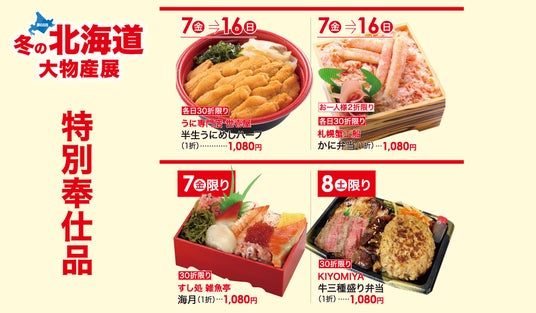 週末は営業時間を20時まで延長!冬の北海道大物産展は屋上でも同時開催!総勢37店舗が出店する、北の恵みの贅沢な17日間をお楽しみください。