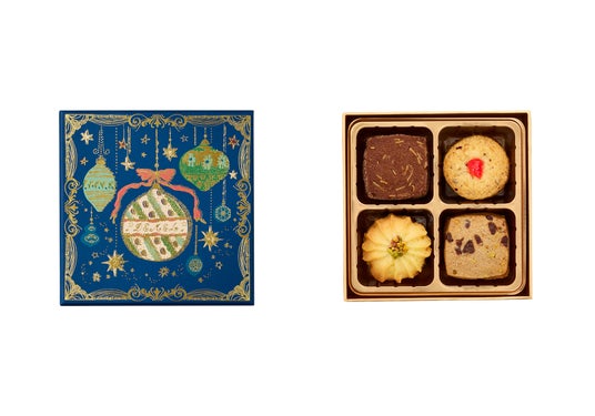 商品特長:バター風味に各種スパイスやナッツ、チョコレートの香り豊かな4種類の個性的なクッキーの詰合せです。
