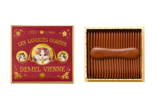 商品特長: デメルを代表する猫の舌の形をしたチョコレート。人気の「ミルク」をクリスマス限定のパッケージでご用意いたしました。今だけの特別なアイテムです。