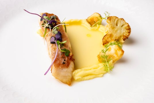 Caviar, Sea Urchin and Scallops on the Fennel Cream, and Pecorino Cheese Crema Catalana