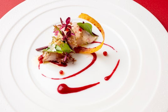 Rosy Seabass Carpaccio with Acidic Raspberry Sauce