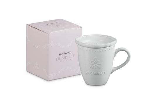 パイ料理とともに、食後のデザートタイムに華を添えるのは「エタニティレース・マグ 330ml」。ティーやコーヒーだけでなく、ホットチョコレートやホットワインなど、ホリデーシーズンのティータイムに活躍します。フタ付きで保温効果もあり、飲む際にはコースターとしてはもちろん、ティーバッグを置いたり、小皿として使うこともできます。優雅で特別なティータイムをぜひご堪能ください。