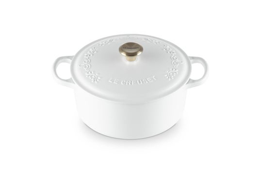 ル・クルーゼの定番鍋「シグニチャー ココット・ロンド」のフタに、レースのような繊細なレリーフを施したシーズナル限定のデザイン。マットな質感が美しい、雪を思わせる「コットン」と夜空を連想させる「ネイビー」の2色展開。「煮る」、「炊く」、「焼く」といった幅広い料理を1つでこなす万能鍋。ポトフやビーフシチューなどホリデーシーズンに人気のメニューにも大活躍してくれます。