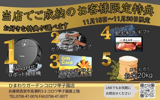 11月30日まで限定の企画となっておりますので、お早目のご検討をよろしくお願いいたします。