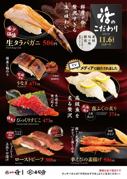 株式会社活美登利(本社:東京都品川区、代表取締役社長:土屋秀仁)が運営する「回し寿司活/寿司活」は、運営店舗で本日11月6日(木)より秋限定メニューの販売を開始いたします。