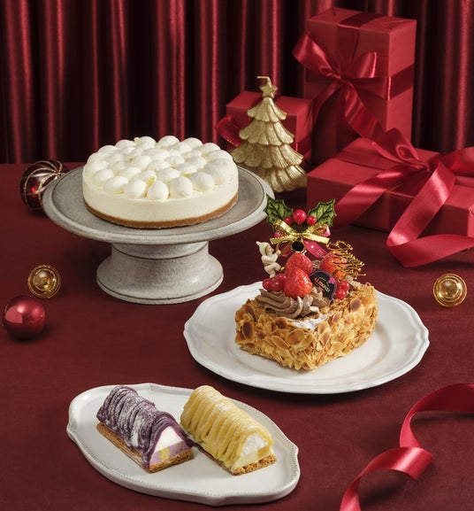 東京ギフトパレットでは、今年も予約なしで当日買える種類豊富なクリスマスケーキを展開します。【アマンド東京】からはナポレオンパイのクリスマス限定商品『雪降るチョコナポレオンパイ』を販売します。【OIMO】は、さつまいもとチーズの風味が味わえる『OIMOふわとろチーズケーキ』を販売するなど、バラエティ豊かなクリスマスケーキをご用意します。