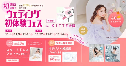 【関西初出店!いよいよグランドオープン】11/22(土)~11/24(祝月)結婚準備を楽しく進めるウェディング初体験フェス開催決定 in DRESSY ROOM OSAKA(大阪駅直結)