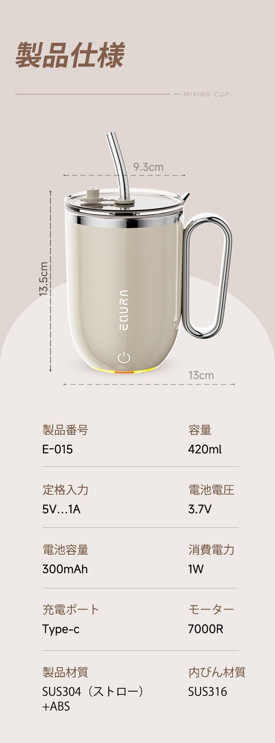 大容量の420ml設計により、一度にたっぷりと飲料を作ることができ、忙しい朝や職場でも大活躍します。