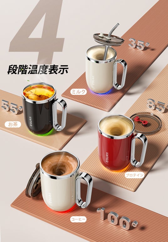4色で、ひと目で最適な温度がわかります。熱すぎて飲めない失敗や、ぬるくなった残念感を防ぎ、ベストな温度でドリンクを楽しめます。