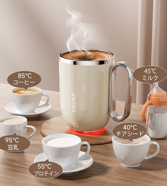 新たに温度感知システムを搭載し、飲み物の温度をリアルタイムでLEDカラー表示。ブルー:35℃以下