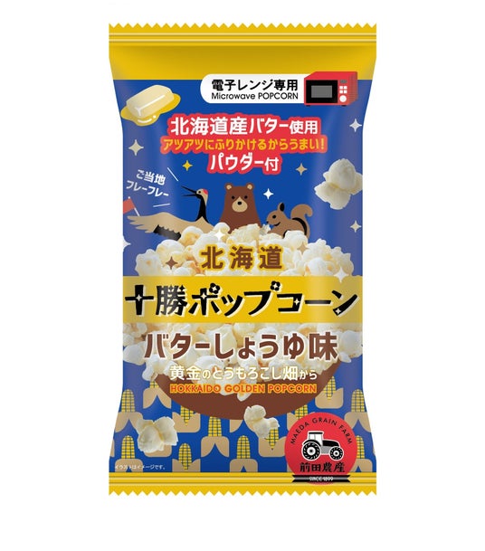 アツアツのポップコーンに後がけパウダーでおいしさアップ!前田農産食品「北海道十勝ポップコーン バターしょうゆ味」を全国販売