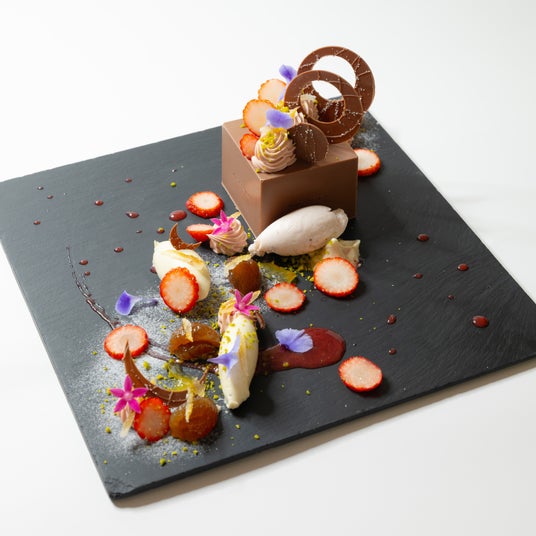 水尾の柚子と苺のミルフィーユ ショコラ仕立ての枡