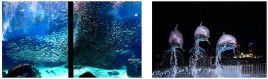 音と光のイワシショーイメージ(提供:マリンワールド海の中道) イルカショーイメージ(提供:マリンワールド海の中道)