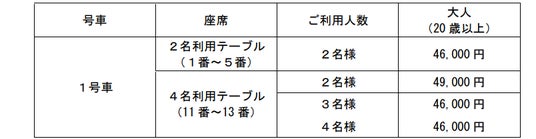 ・通常運行時のドリンクに加え、或ツアー限定ドリンク」をお楽しみいただけます。或ツアー限 定ドリンク」の提供は 19:30 頃からとなります。