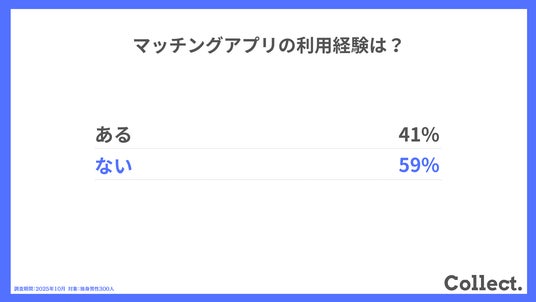 ディーエムソリューションズ株式会社(東証スタンダード上場)が運営するメディア「Collect.(コレクト)」では、男性300人にマッチングアプリの利用に関するアンケート調査を実施しました。