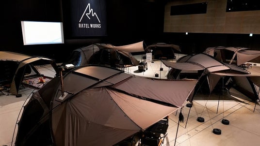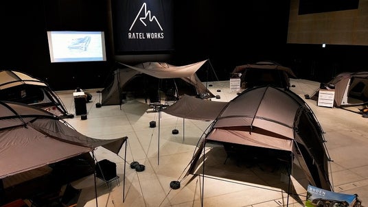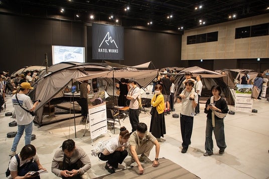 会場では、RATELWORKSの人気テント・ギアを中心に、