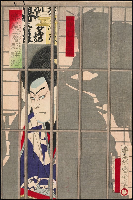 豊原国周《楽屋二階影評判 大膳 中村芝翫》1883