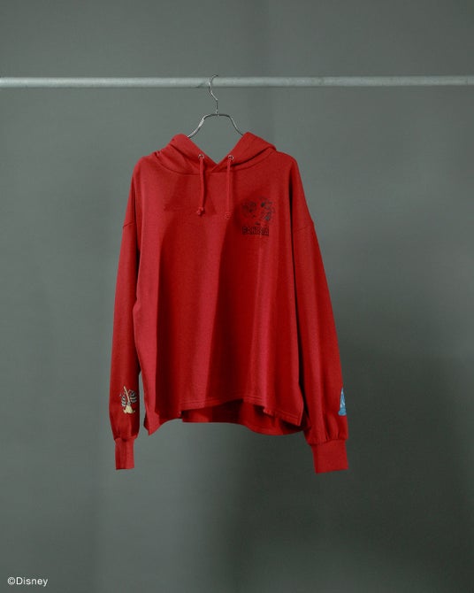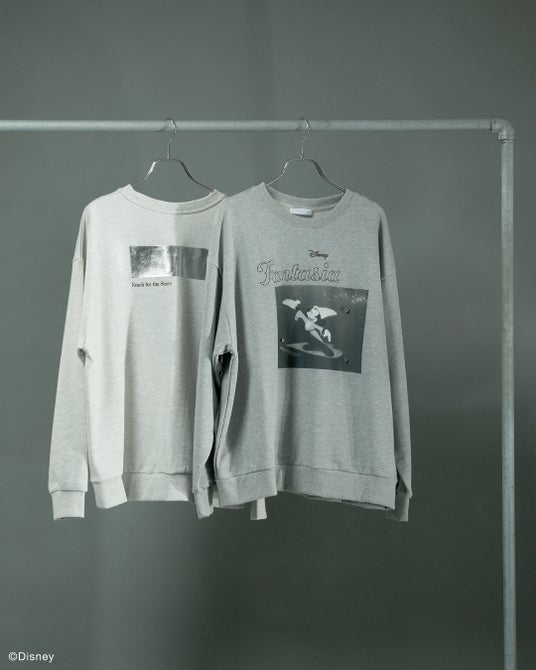 そのほか、モノトーンのフォトにビジューを配し、バックには箔プリントを施したスウェットや、ゴールドの刺繍で「ミッキーマウス」をあしらったベロア巾着など、身に着けるだけで煌めきの世界観を感じられるアイテムを取り揃えています。