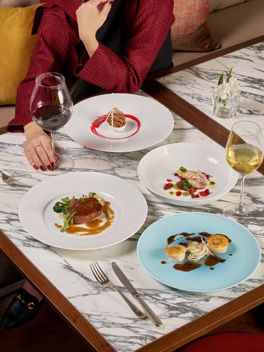 御堂筋が冬の光彩を纏う季節、通りに面したブラッスリー「REGINE」では、ミシュラン二つ星シェフ 飯塚 隆太氏の感性が息づく、フェスティブシーズンならではのメニューをご用意いたします。森の黒いダイヤモンドと呼ばれるトリュフをあしらった前菜「帆立貝のクルスティアン 根セロリピューレ ソースペリグー」は、素材の本質を極めることで生まれる澄み渡る味わいが優美に広がります。「鰆のプランチャ焼き ほうれん草とビーツのヴィネグレットと共に」はビーツとパセリの彩り鮮やかなソースでクリスマスを想わせる一皿。柔らかな灯りと賑わいが調和する空間で、冬の美食が織りなす優雅な煌めきに満ちたエレガンスをお愉しみください。