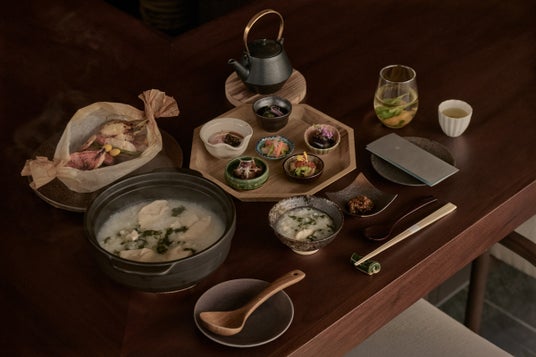 KÚON 箱根強羅のチェックインは13:00。和菓子作家 坂本紫穗氏が監修した和菓子と、こだわりのお茶とのマリアージュ体験〈菓席〉からホテル滞在が幕を開けます。舞台となるティーラウンジでは、スタッフがお茶を淹れ、和菓子とともに提供する空間や、自分でお茶を淹れて、ゆったりと自分時間を過ごすことができる空間があります。夕食後にはお酒を提供し、創作茶カクテルや、おやすみの和菓子をご用意しています。