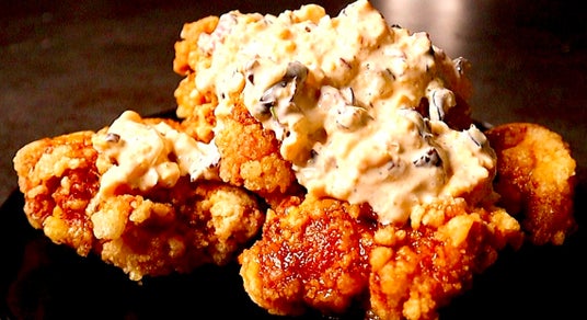 自家製タルタルのチキン南蛮定食が人気。すべての定食に油そばがついてきます。