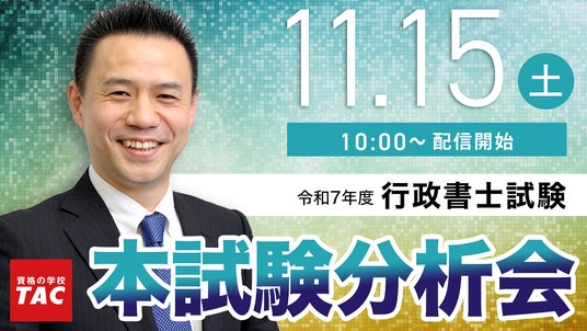 行政書士試験対策講座を展開しているTAC株式会社(東京都千代田区、代表取締役:多田敏男)は、11/9(日)実施『令和7年度(2025年度)行政書士試験』の解答速報を、試験当日にTACのWebサイトおよびYouTubeライブにて公開します!